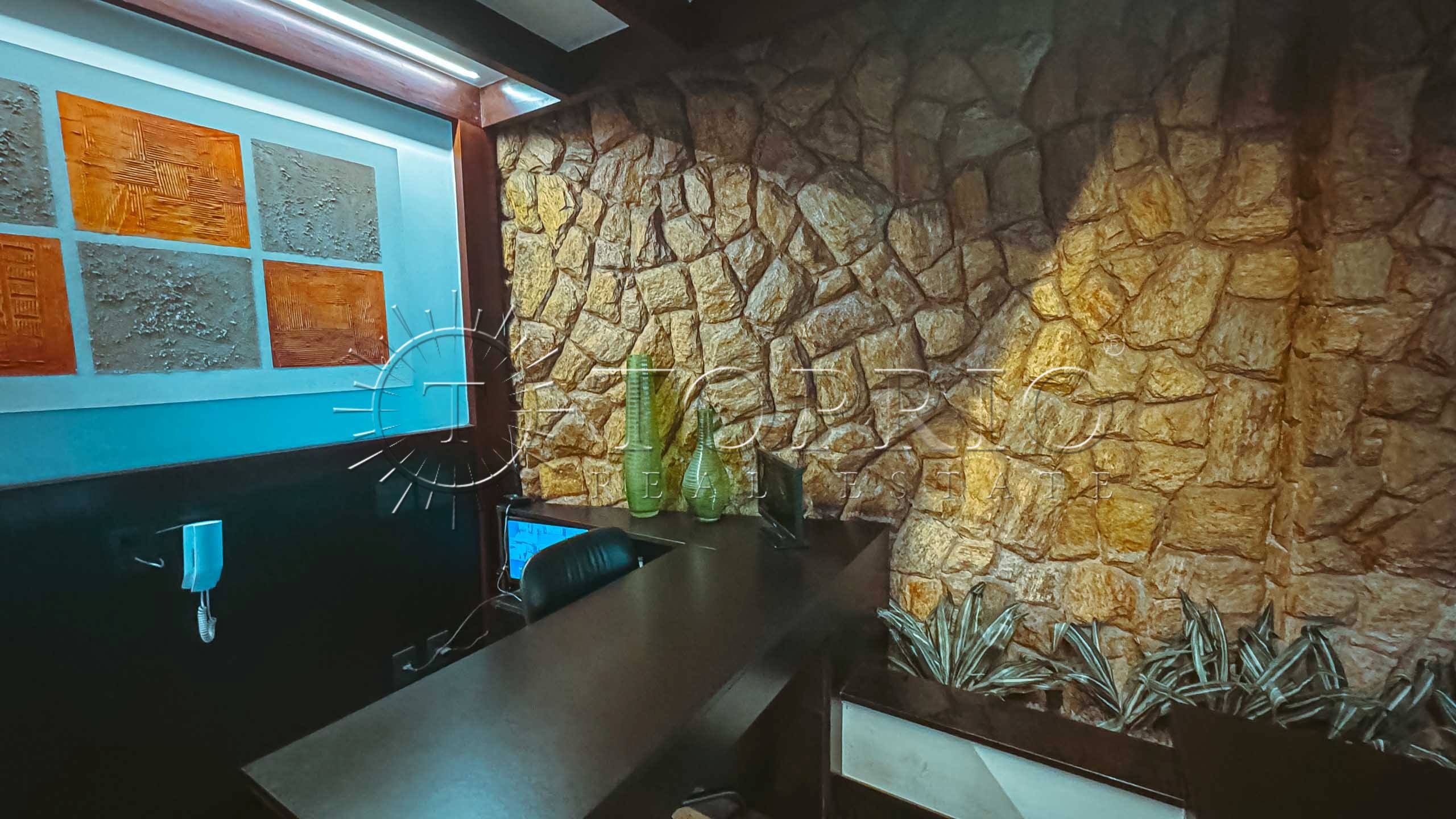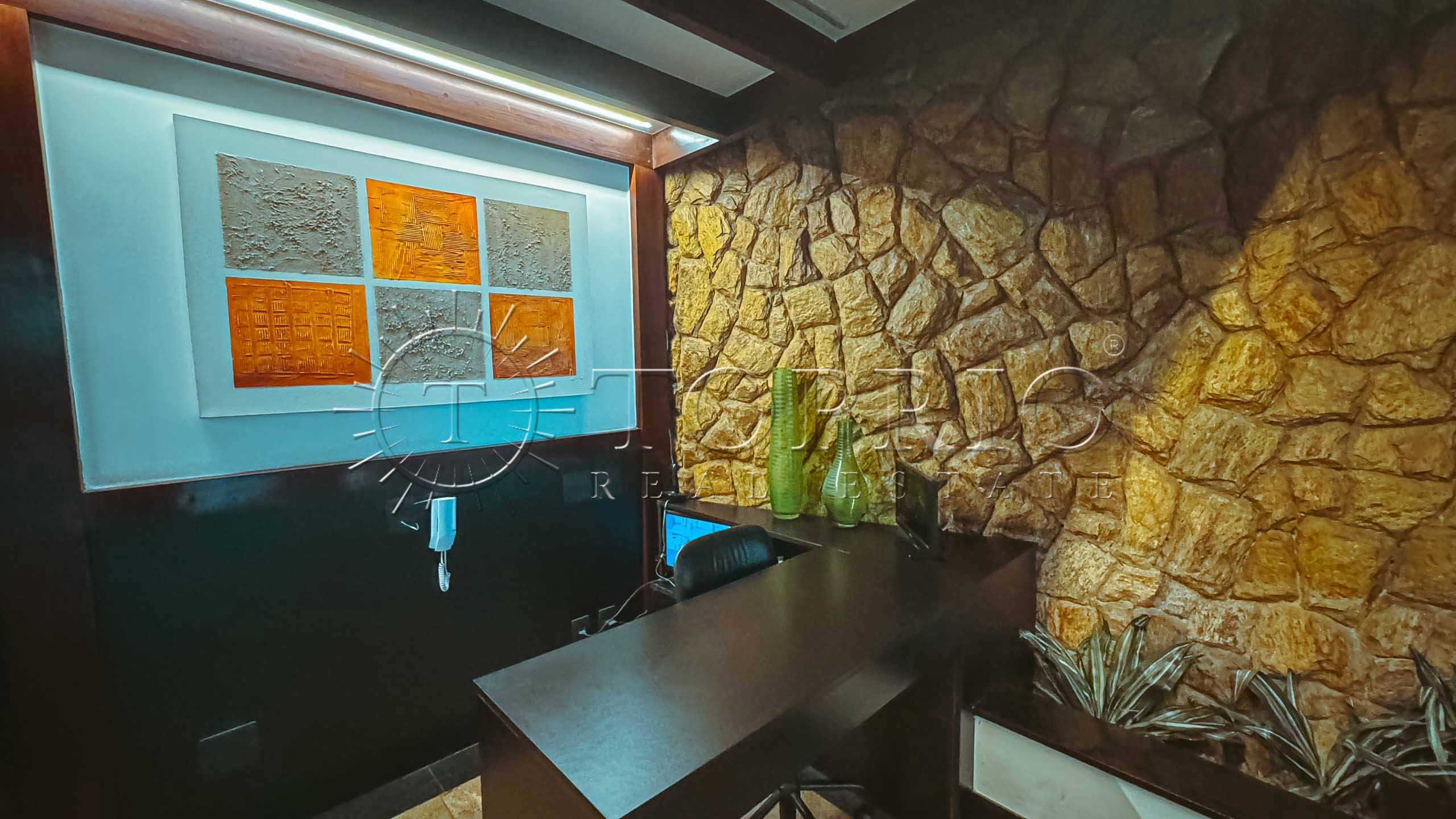 Na sequência, a área íntima apresenta 2 quartos, sendo 1 suíte, todos com armários embutidos, ar-condicionado e projeto luminotécnico. Por conseguinte, um banheiro social atende tanto os quartos quanto a área social, garantindo funcionalidade e praticidade.