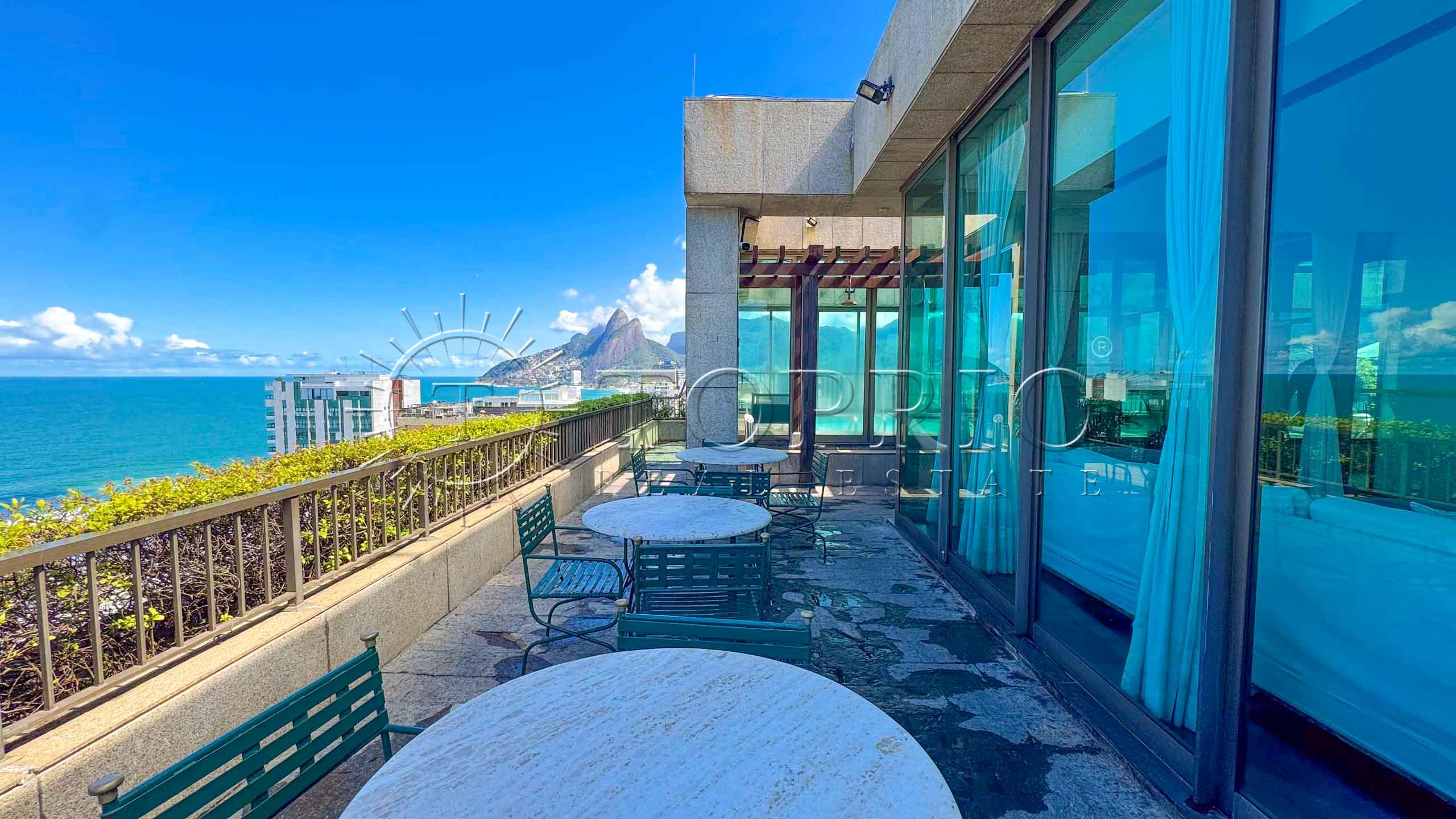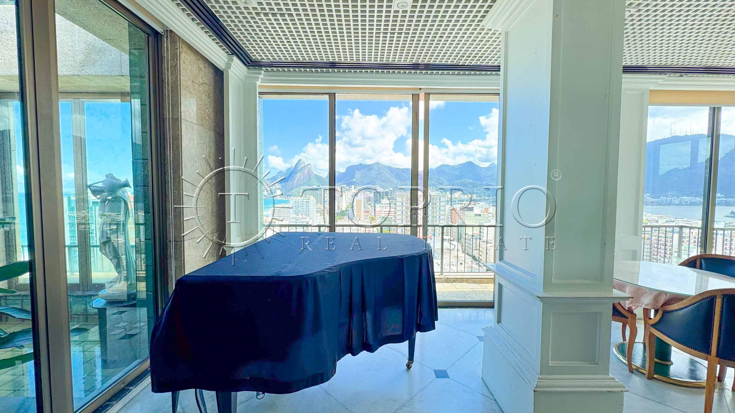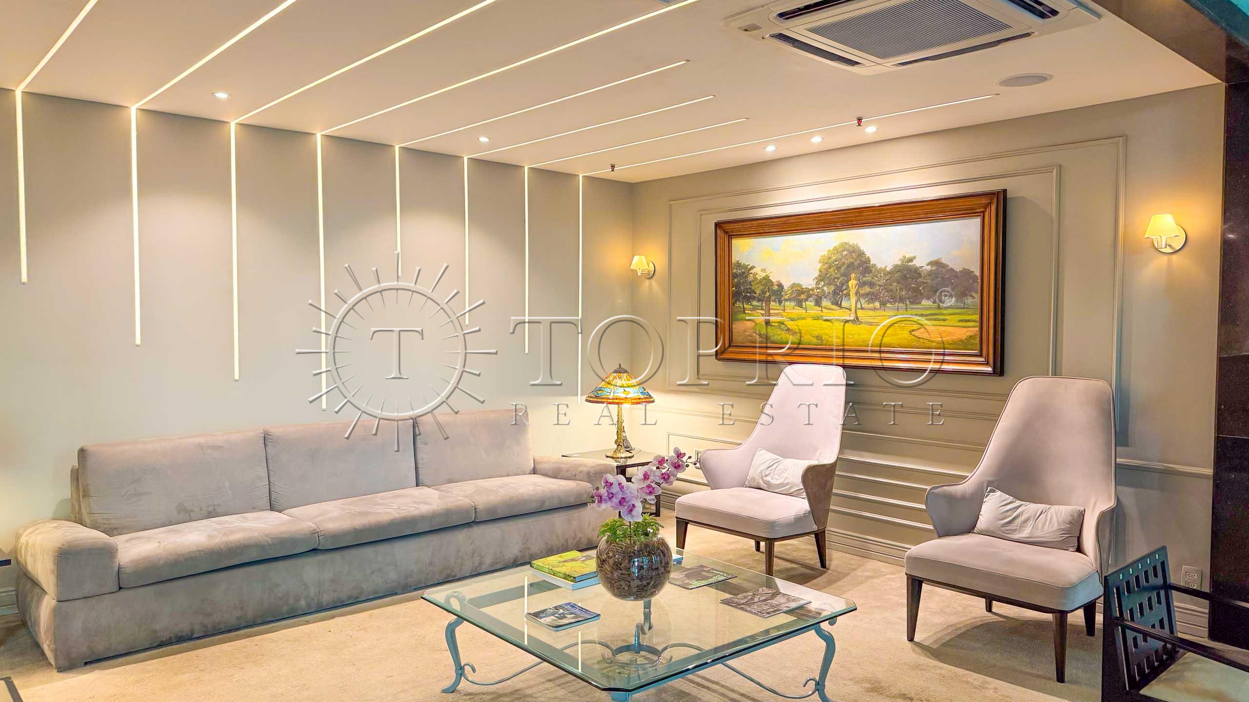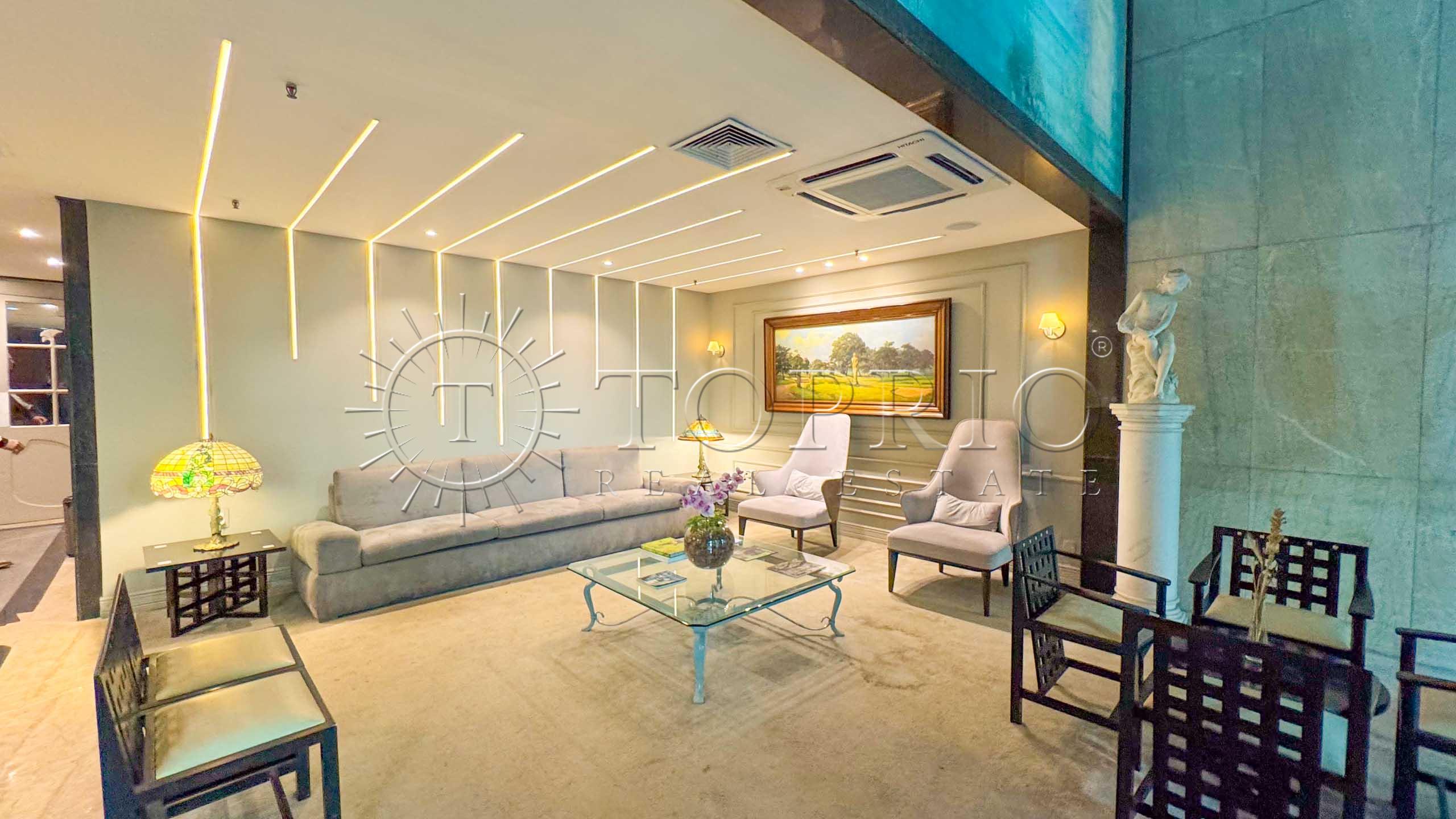 🛋️ Na área social, temos uma sala de estar com cozinha integrada, trazendo praticidade ao dia a dia 🧠. O ambiente conta com varanda com vista lateral para o mar 🌊, Morro Dois Irmãos 🗻 e Cristo Redentor ✝️, além de ótima iluminação ☀️ e ventilação natural 🍃.