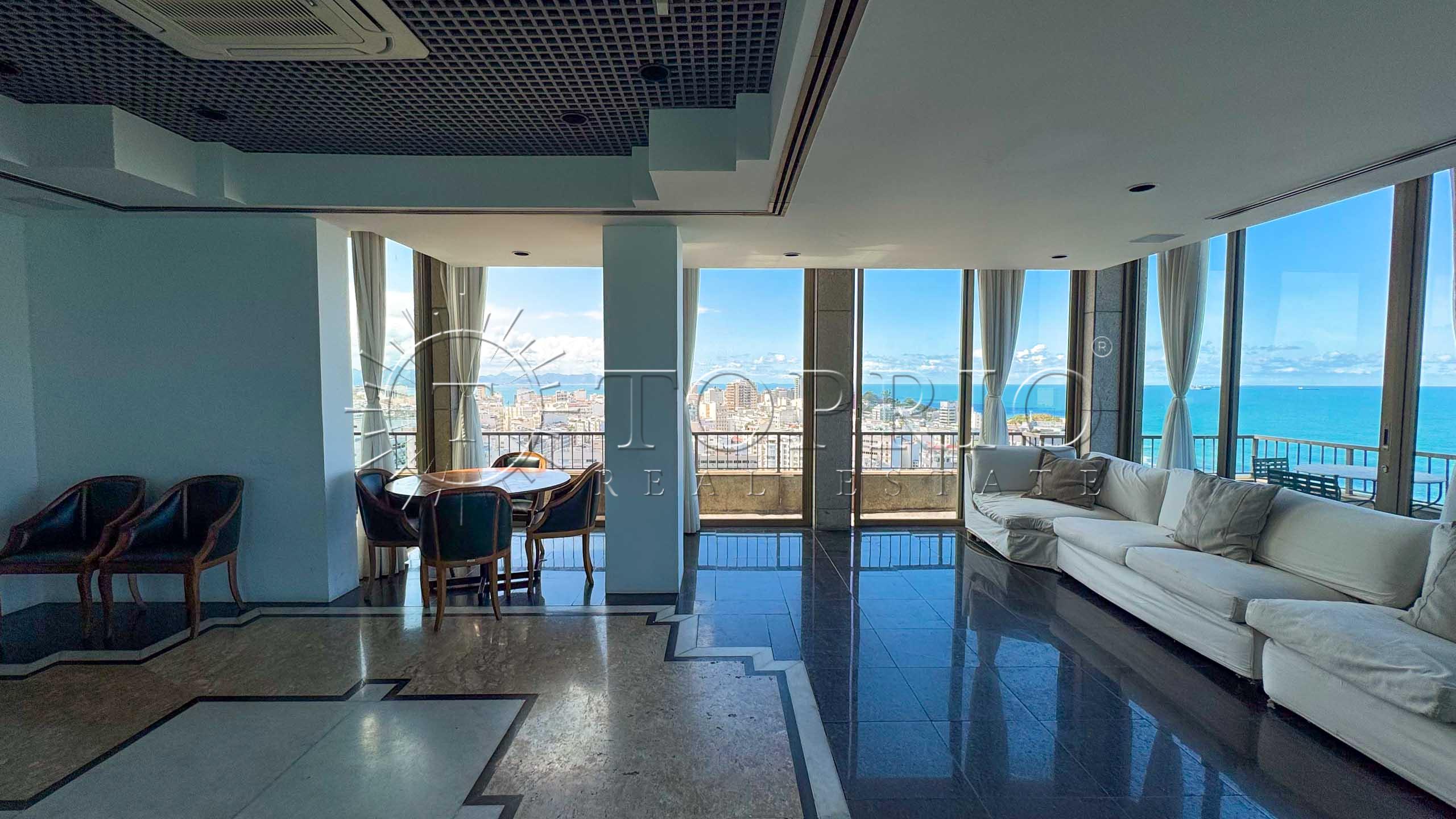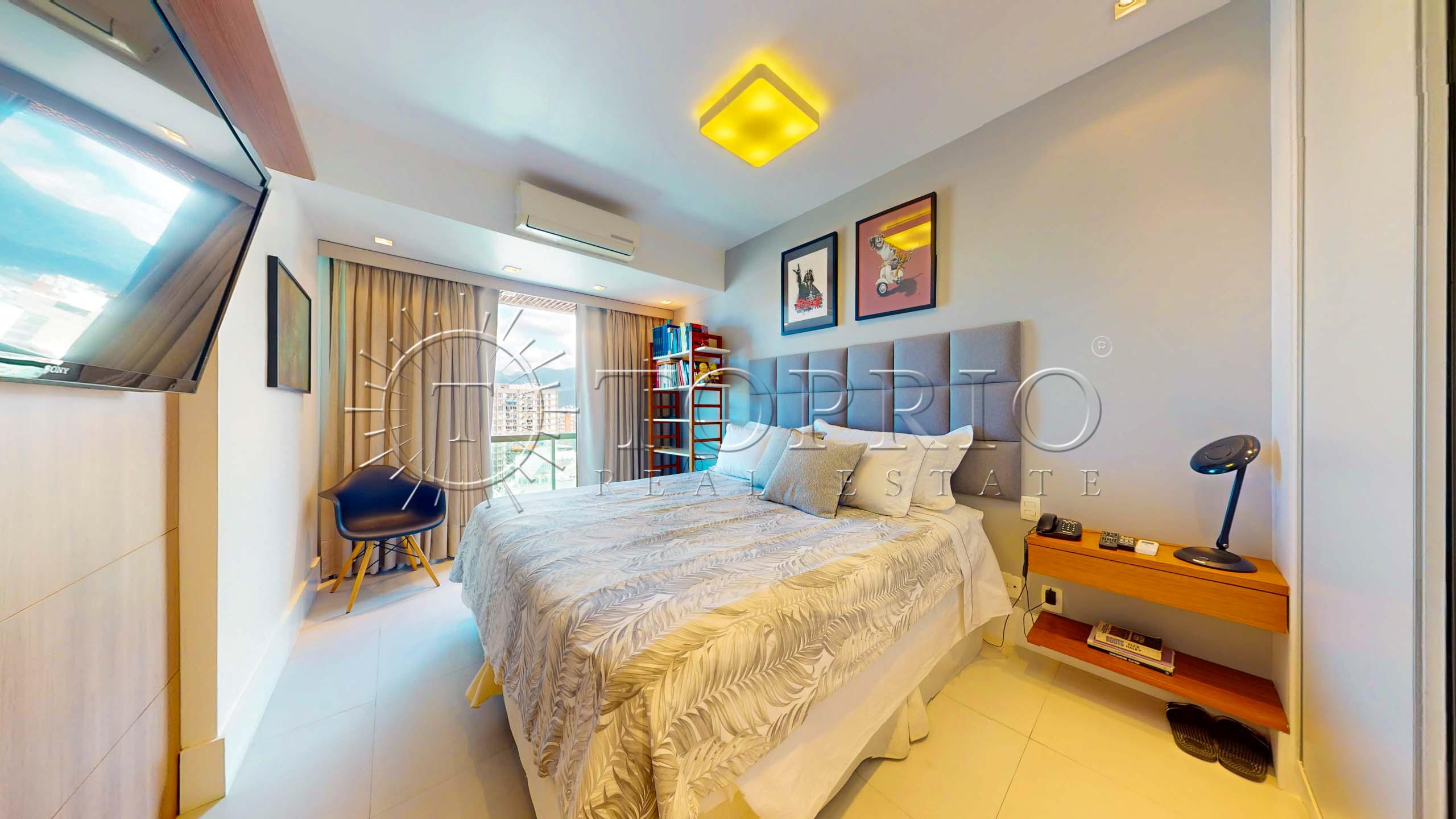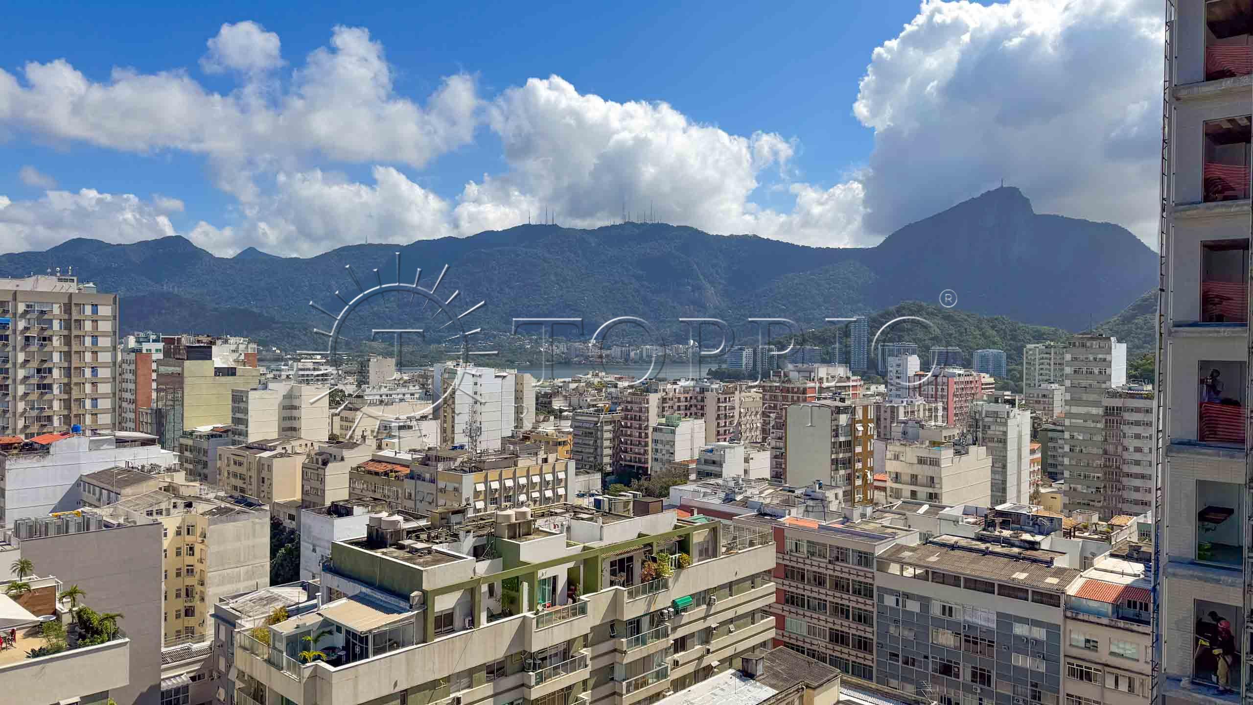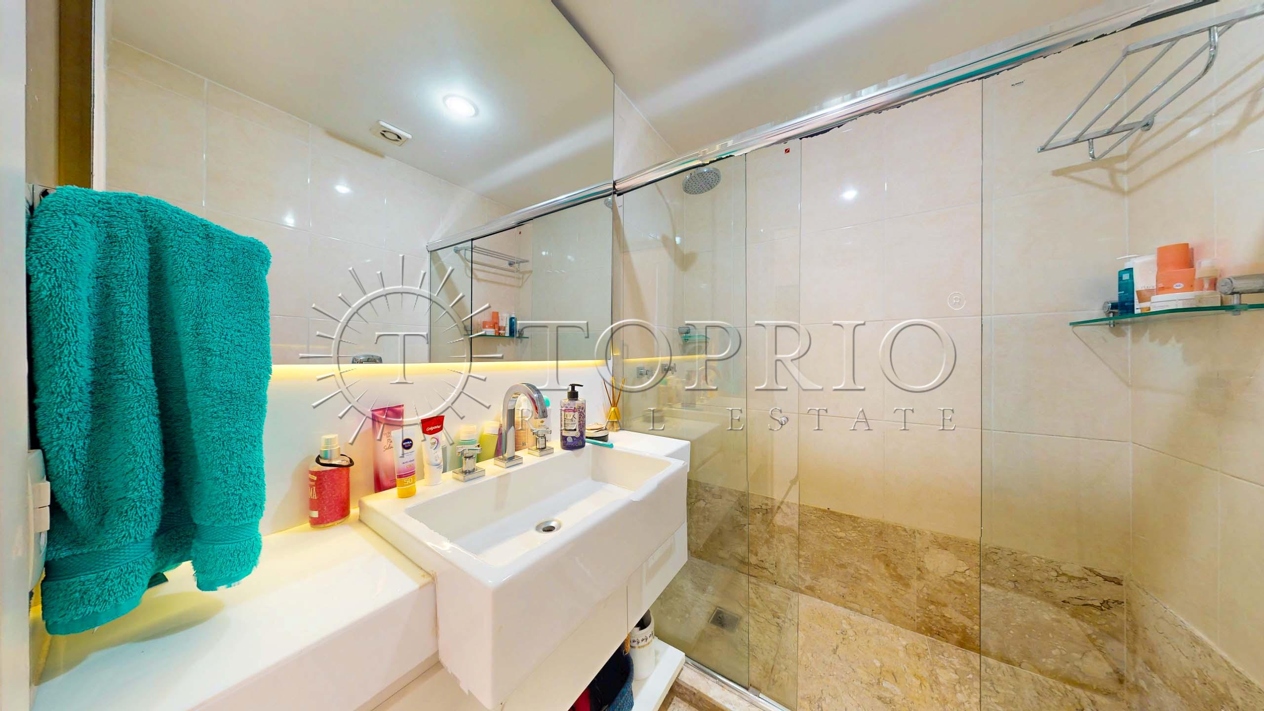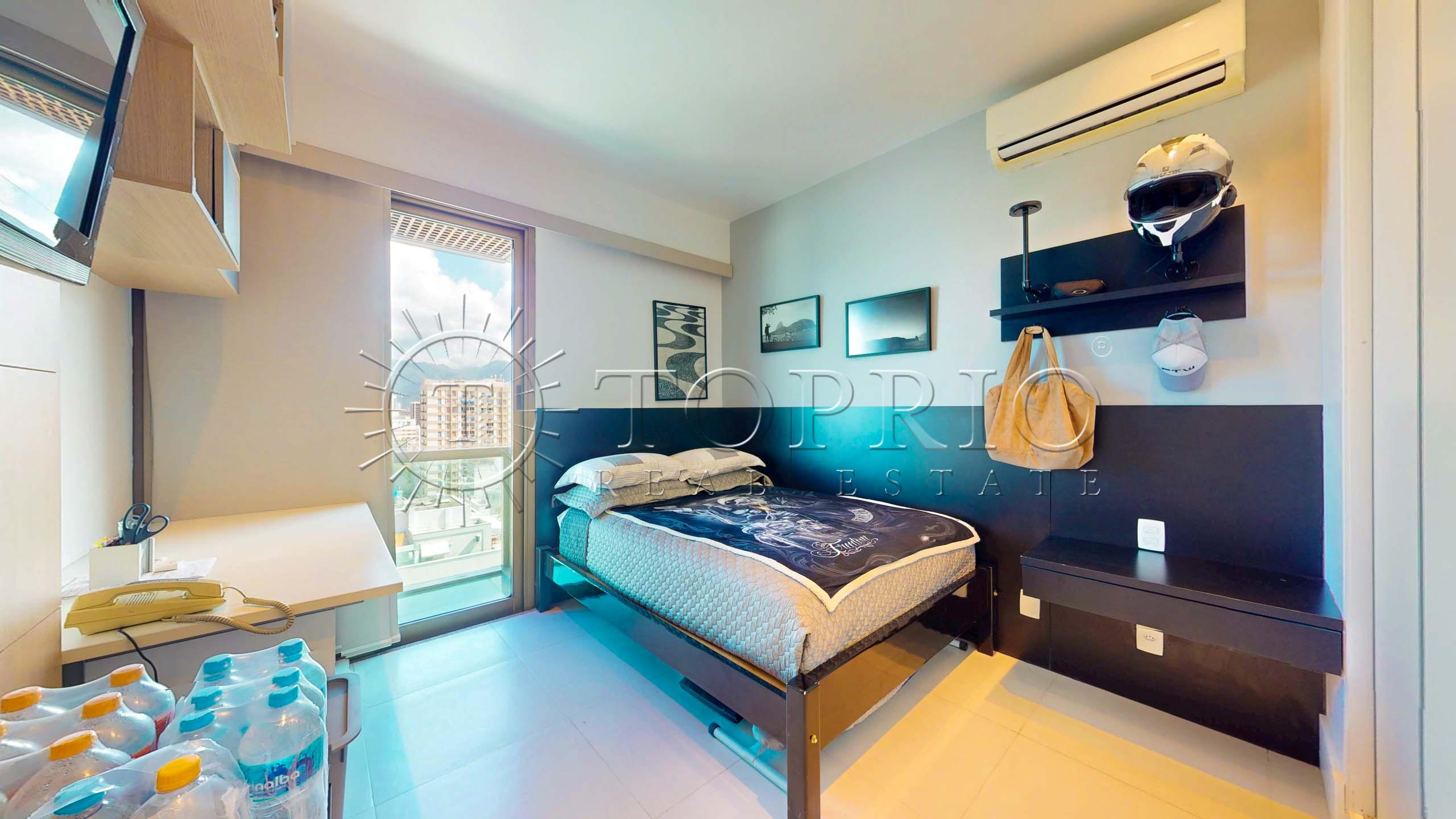 🛋️ Na área social, temos uma sala de estar com cozinha integrada, trazendo praticidade ao dia a dia 🧠. O ambiente conta com varanda com vista lateral para o mar 🌊, Morro Dois Irmãos 🗻 e Cristo Redentor ✝️, além de ótima iluminação ☀️ e ventilação natural 🍃.