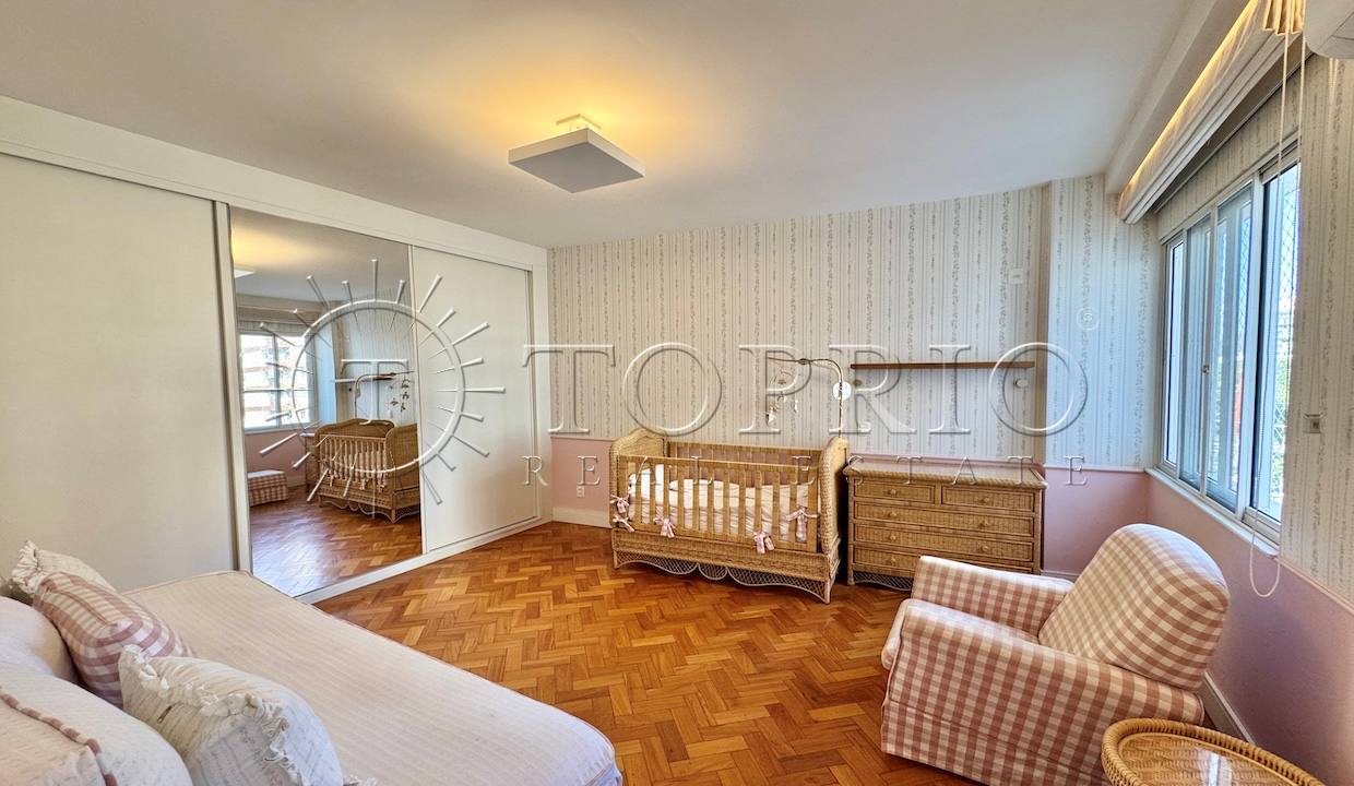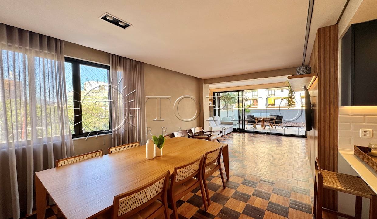 O piso em madeira nobre restaurado e o pé-direito alto reforçam a elegância do projeto. O prédio oferece portaria 24 horas e serviço de manobrista para a vaga de garagem. Embora o acesso à cobertura exija um lance de escada, isso não compromete o conforto nem a praticidade.