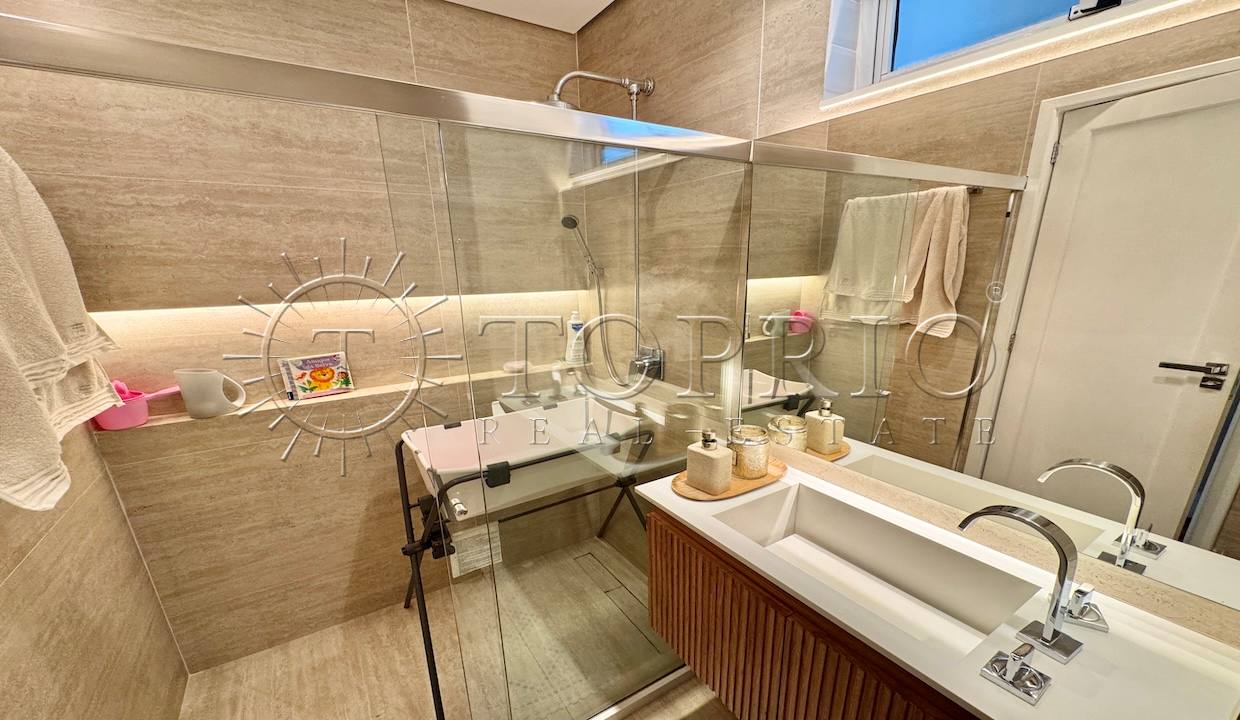 Logo ao entrar, você encontra uma sala ampla e integrada à cozinha gourmet e ao terraço. Essa configuração cria um ambiente fluido, iluminado e perfeito para receber amigos ou relaxar com a família. Além disso, o espaço externo se destaca com jacuzzi, sauna e área de convivência — elementos que transformam o dia a dia em momentos especiais.