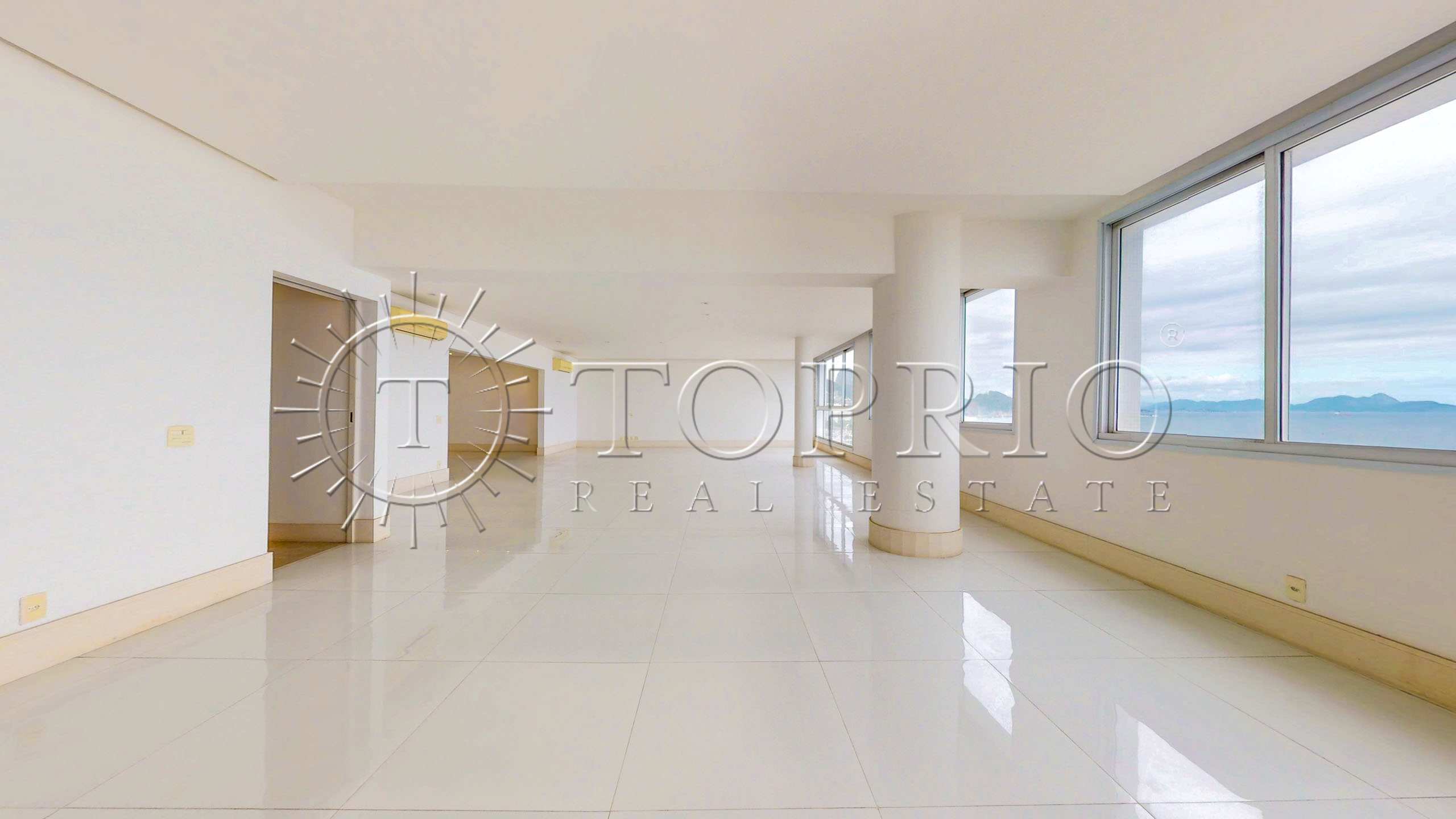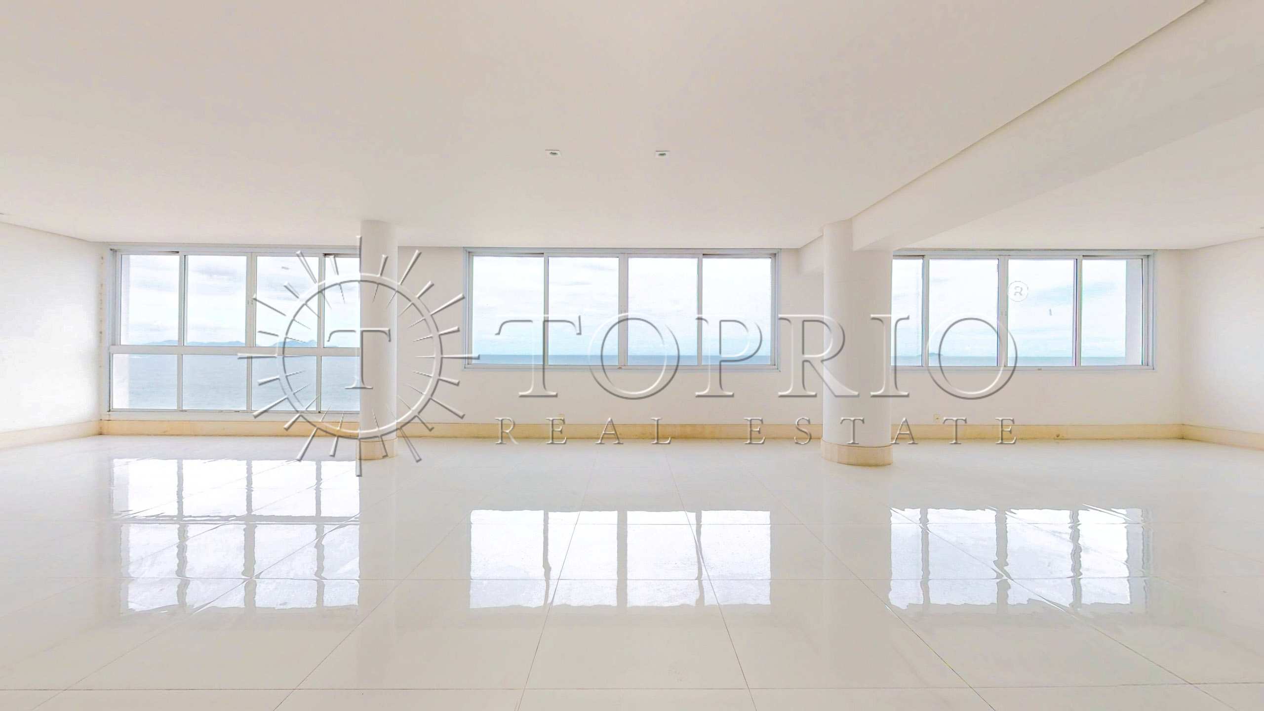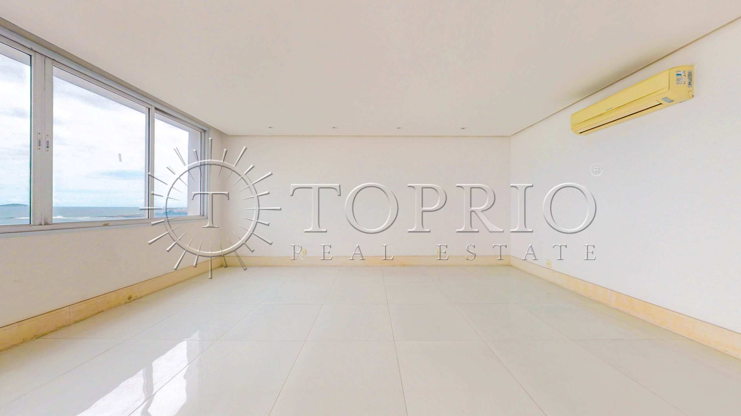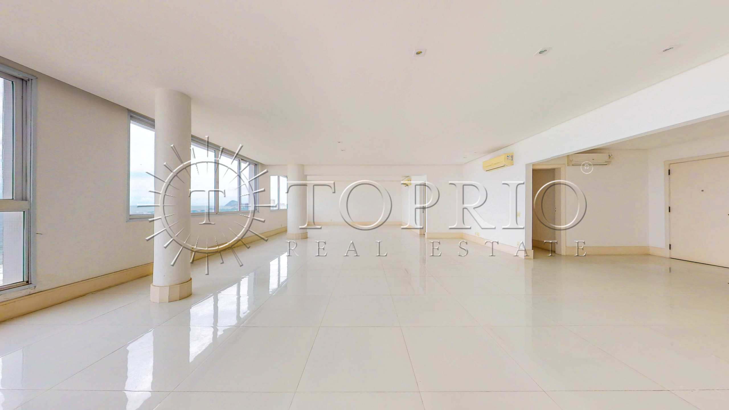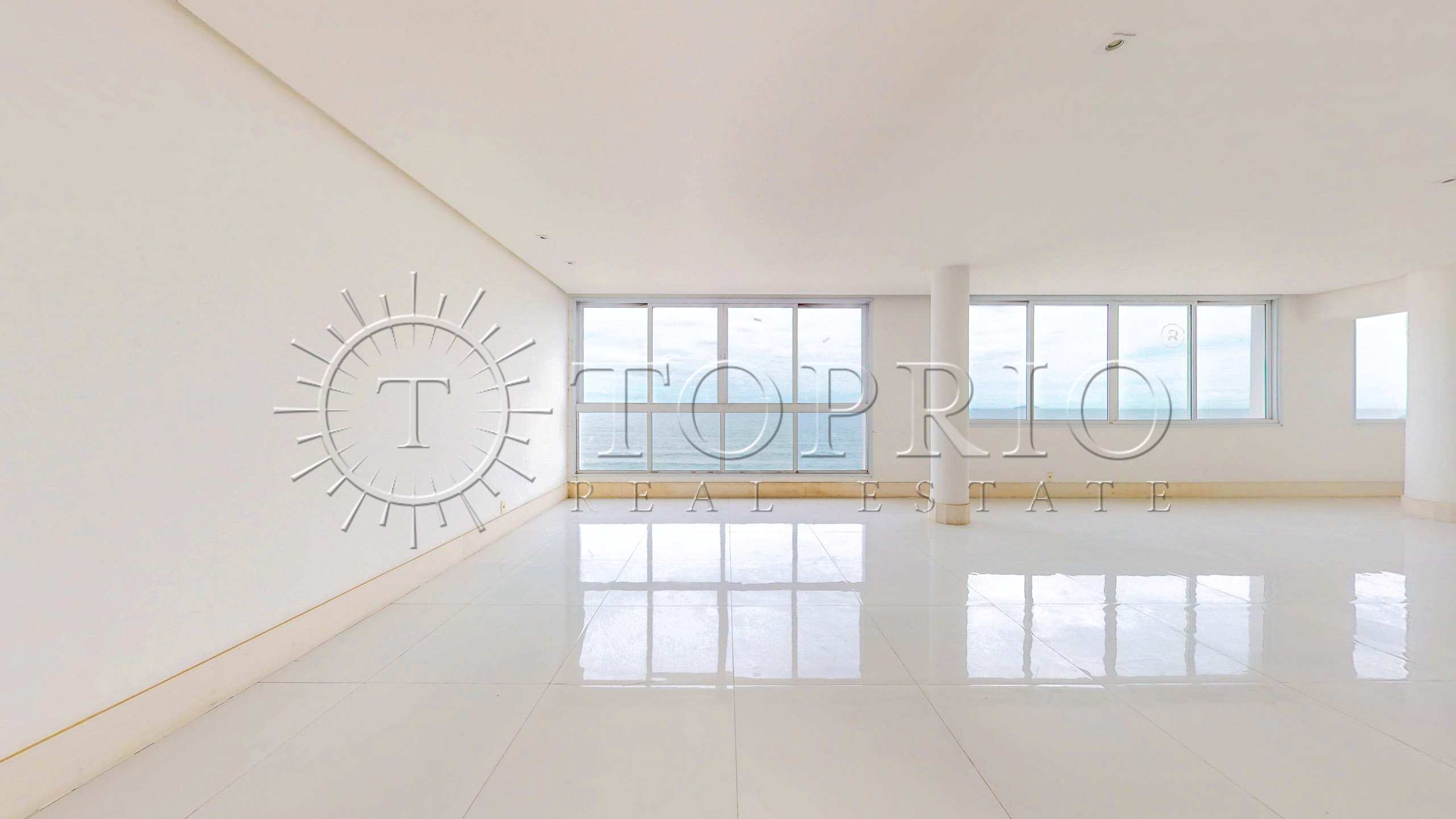 Este apartamento de 370 m² na Avenida Atlântica, em Copacabana, ocupa um andar alto e oferece uma vista frontal e permanente para o mar. O imóvel fica em um prédio clássico e gabaritado, localizado no Posto 4, em um ponto nobre da orla. Além disso, recebe o sol da manhã e fica próximo a um farto comércio, o que torna o dia a dia muito prático.