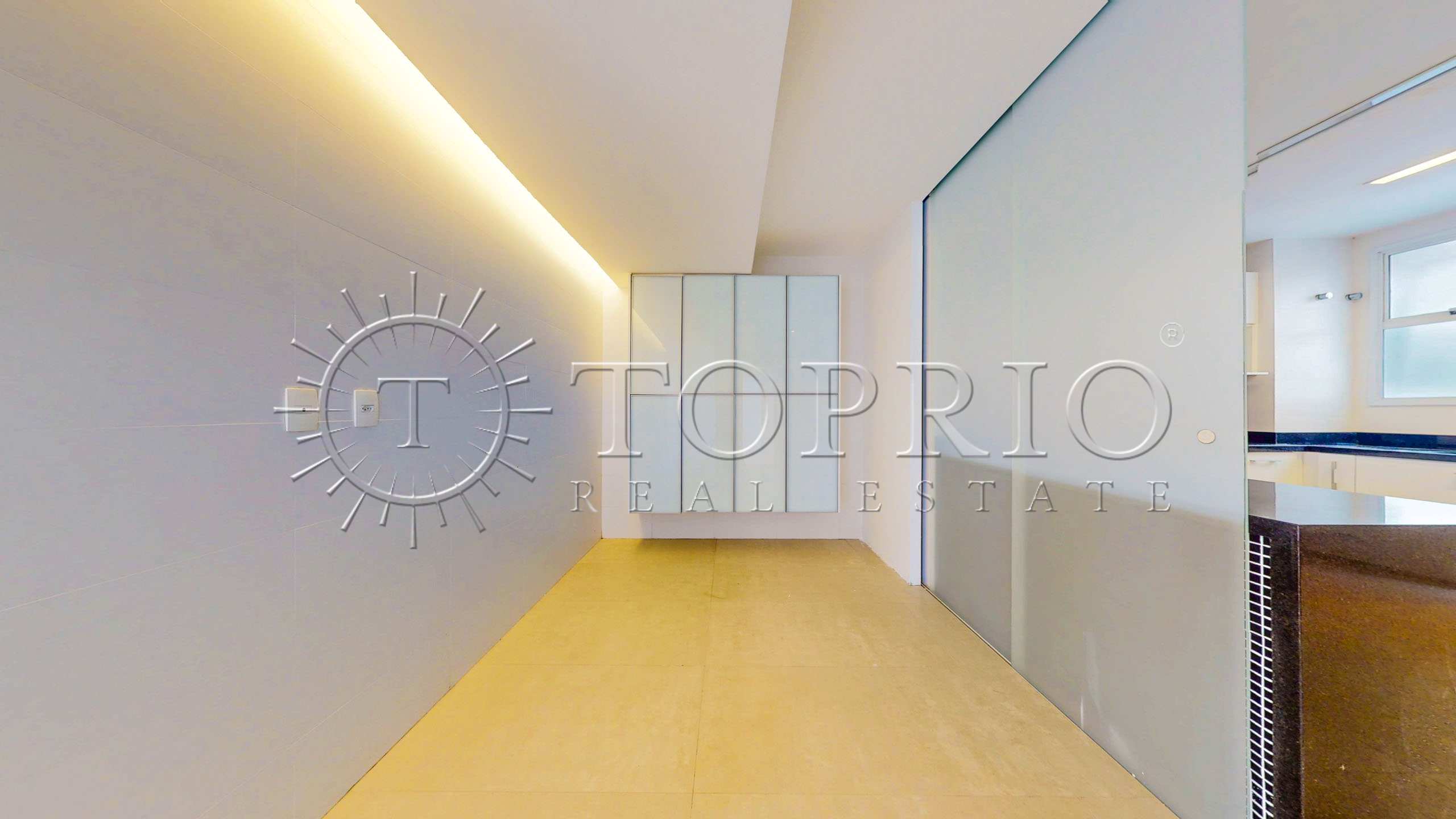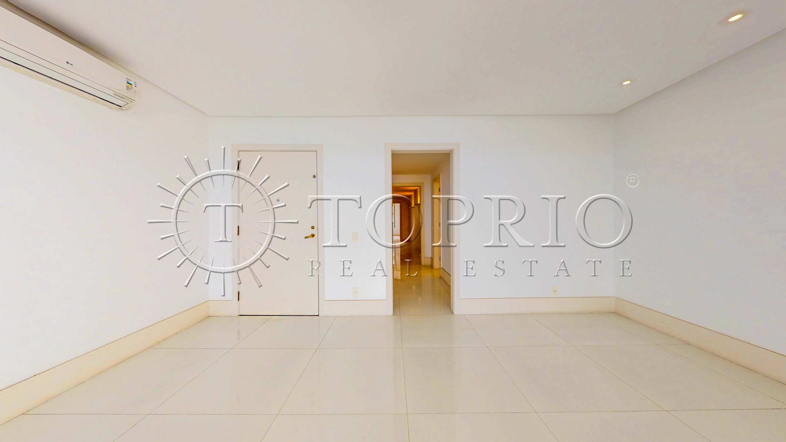 A planta é ampla e versátil, o que permite diversas possibilidades de customização. A área social traz uma sala exuberante, capaz de comportar três ambientes amplos. As janelas largas garantem excelente iluminação e ventilação naturais, além de enquadrar a vista para o mar. Todo o ambiente utiliza piso frio e ar-condicionado split, oferecendo conforto térmico. Há ainda um lavabo de apoio e um espaço ideal para escritório.