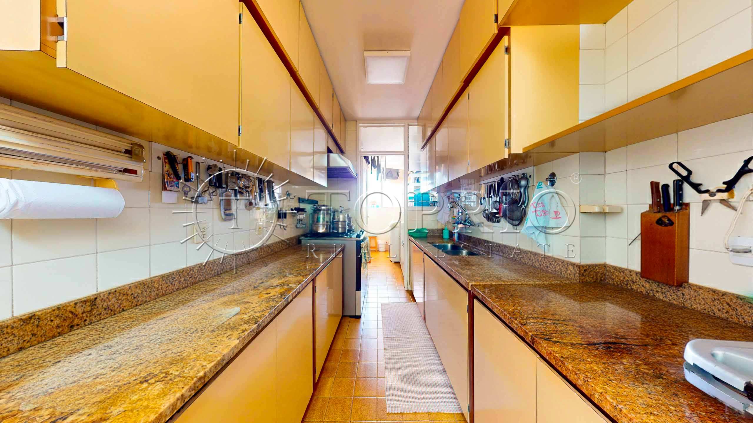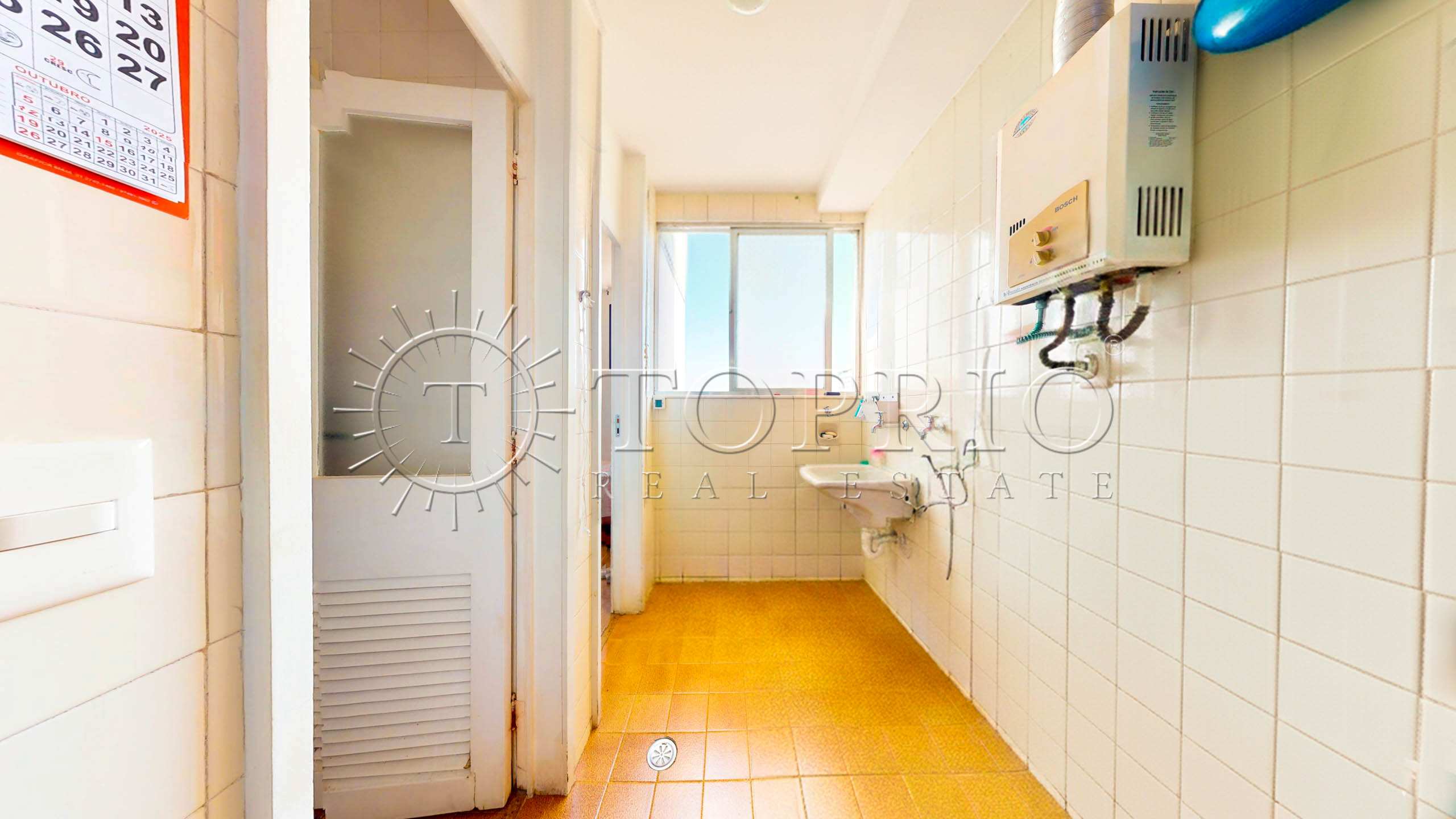A cozinha é funcional e tem espaço para armários e bancadas. A área de serviço inclui dependência completa para funcionários.