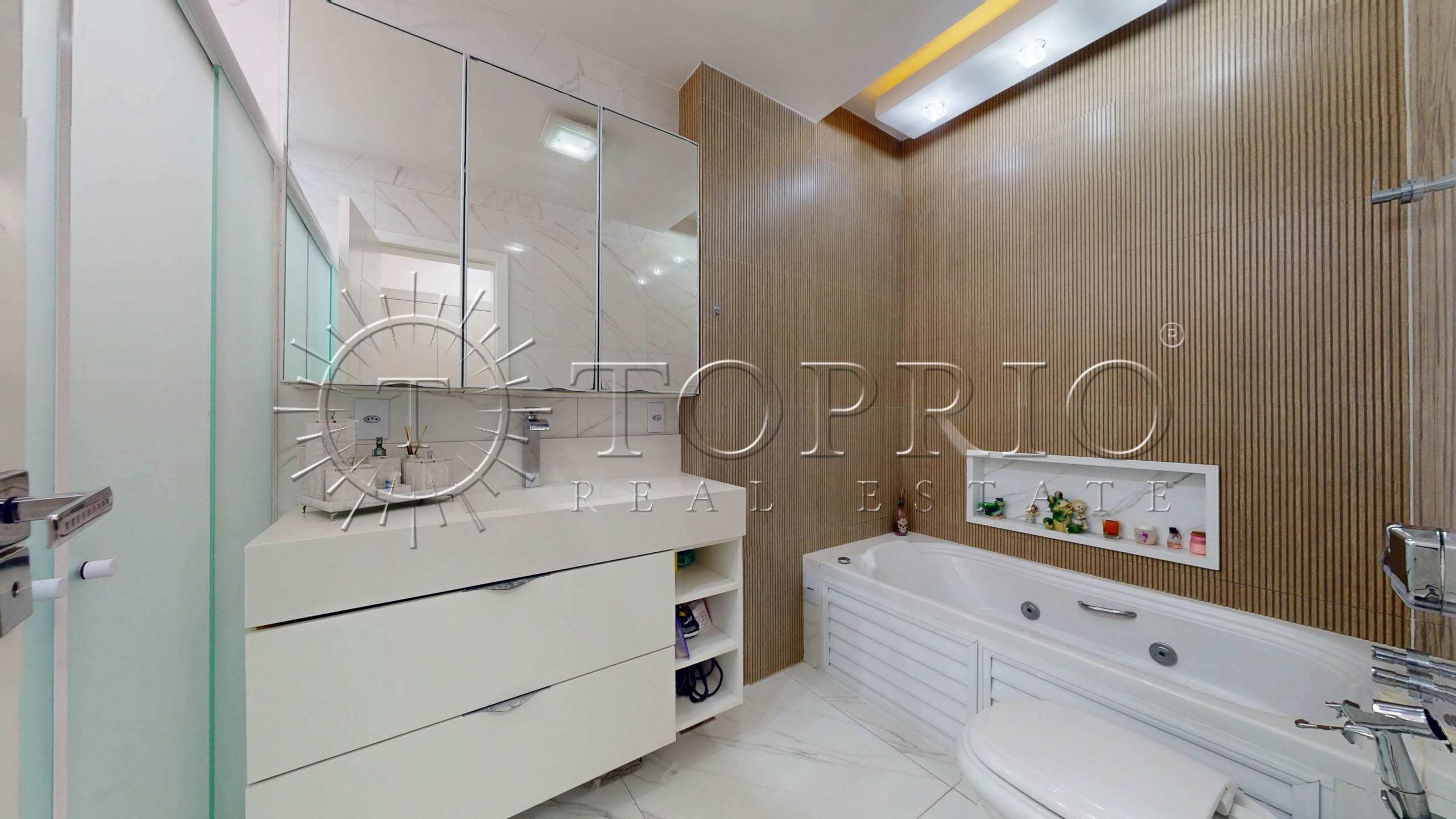 - A área privativa reúne 3 quartos, sendo 1 suíte com walk-in closet e vista para o Cristo Redentor.