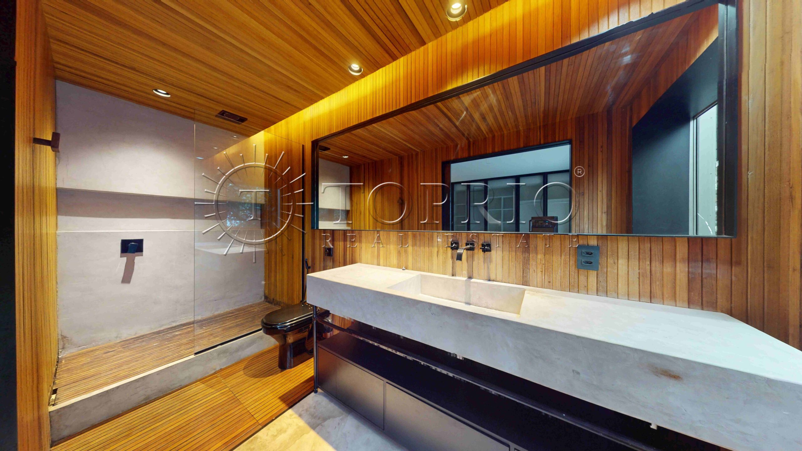 🛁 Banheiro com vista para a copa das árvores, garantindo privacidade e charme natural 🌳