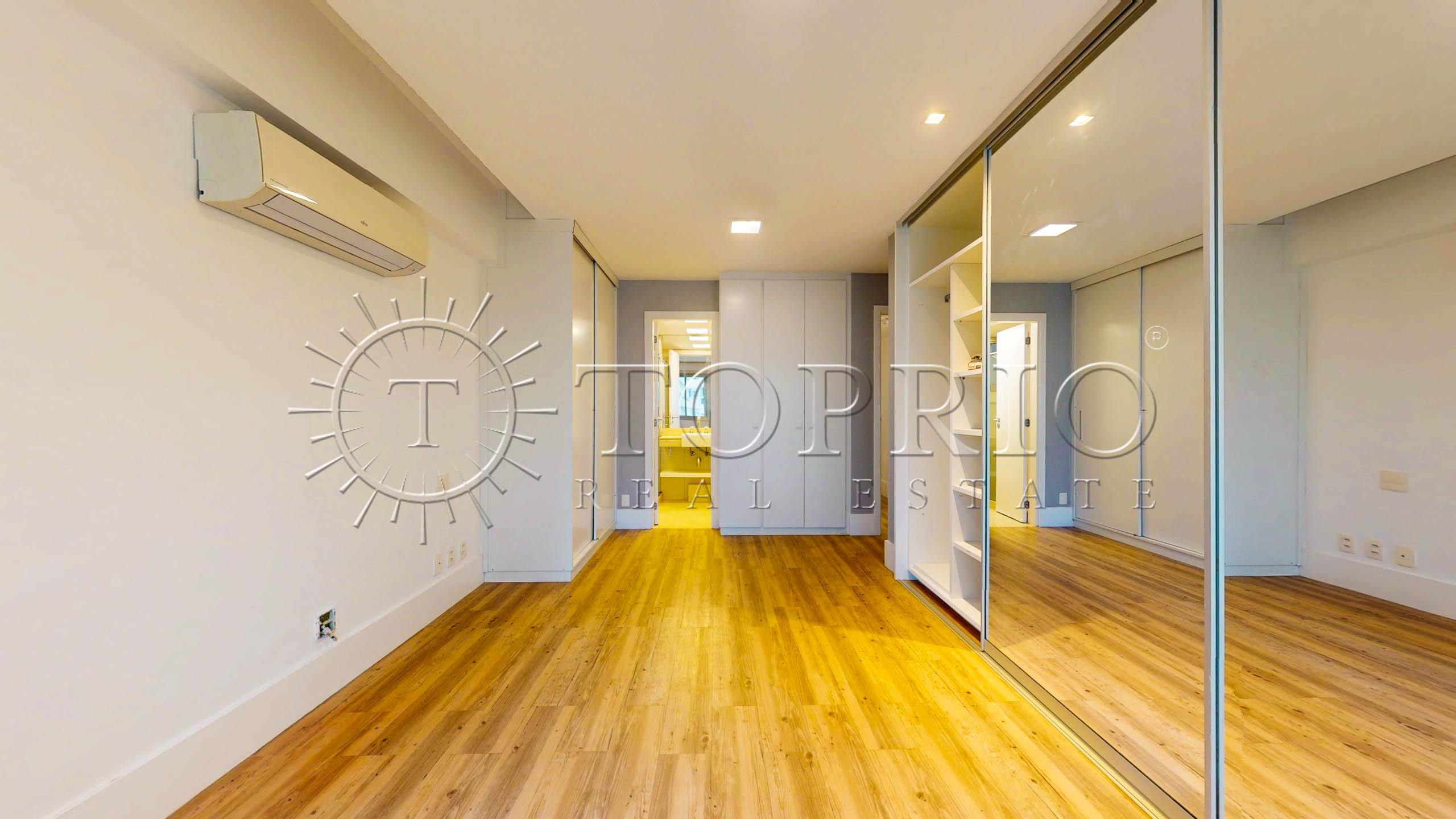 A área privativa reúne três suítes espaçosas, todas com armários planejados e splits instalados.