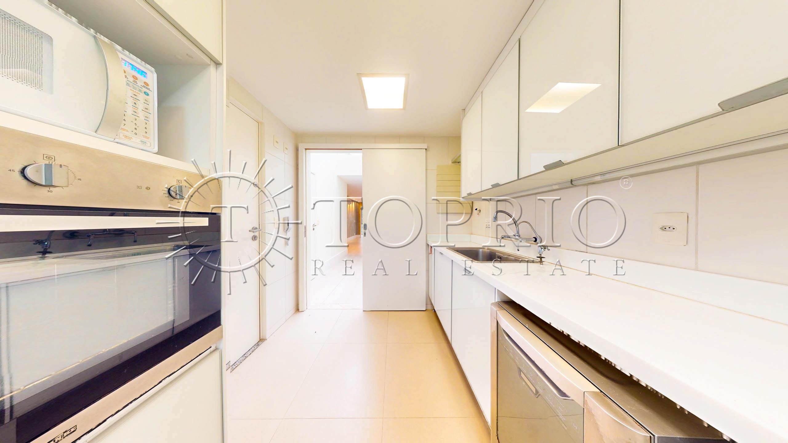 A cozinha oferece excelente espaço de armazenagem, bancadas amplas e ventilação natural constante, o que facilita o dia a dia.