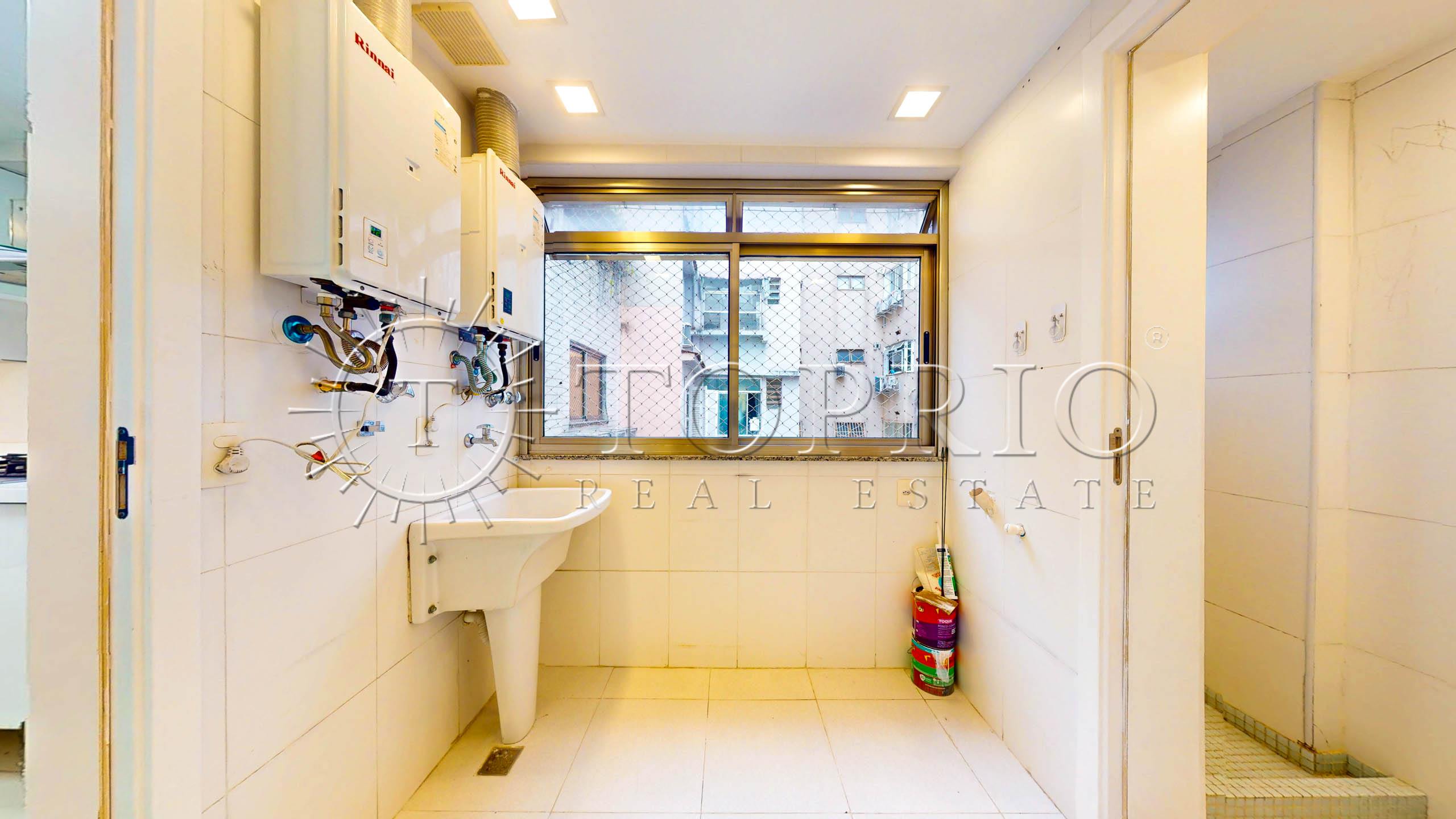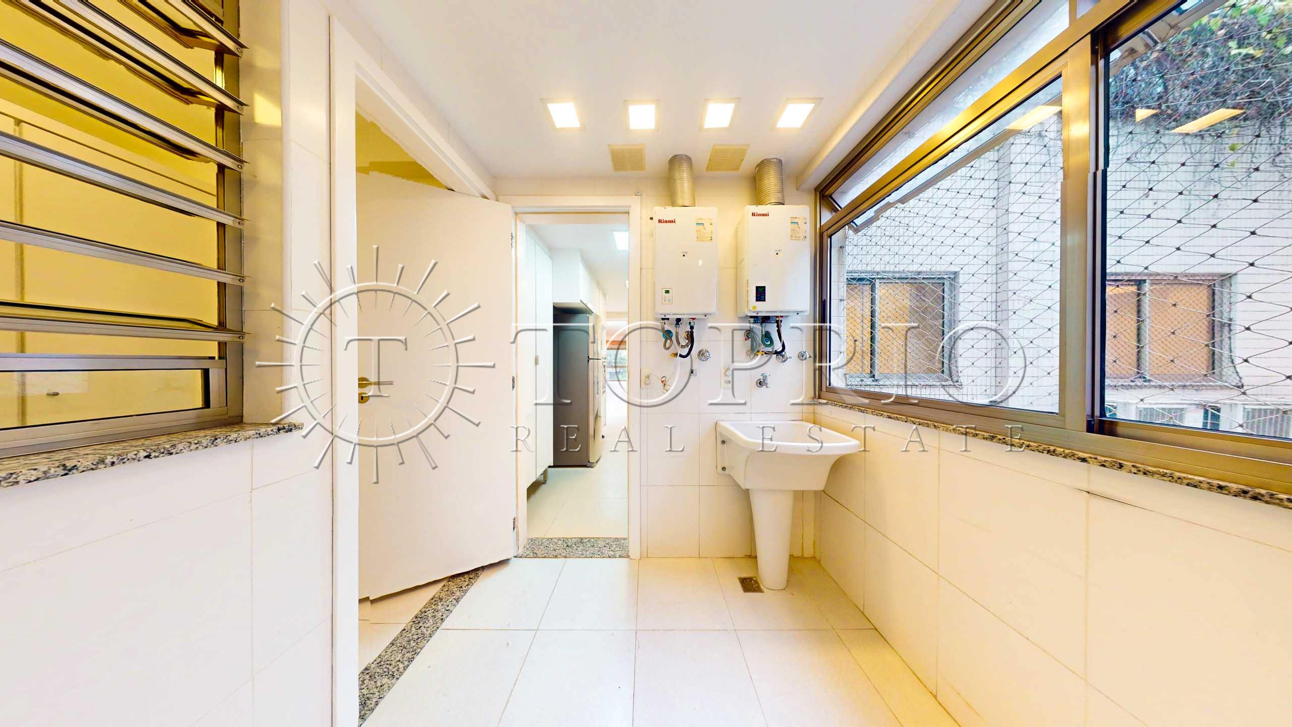 Logo ao lado, a área de serviço completa o conjunto, com dependência e banheiro para funcionários, proporcionando funcionalidade total à rotina.