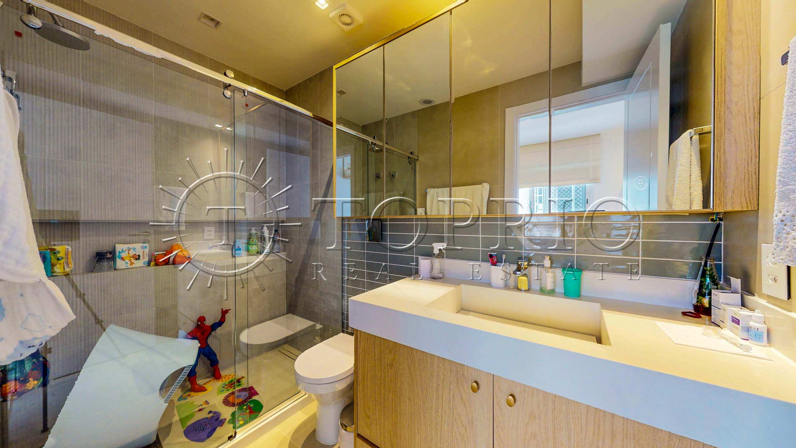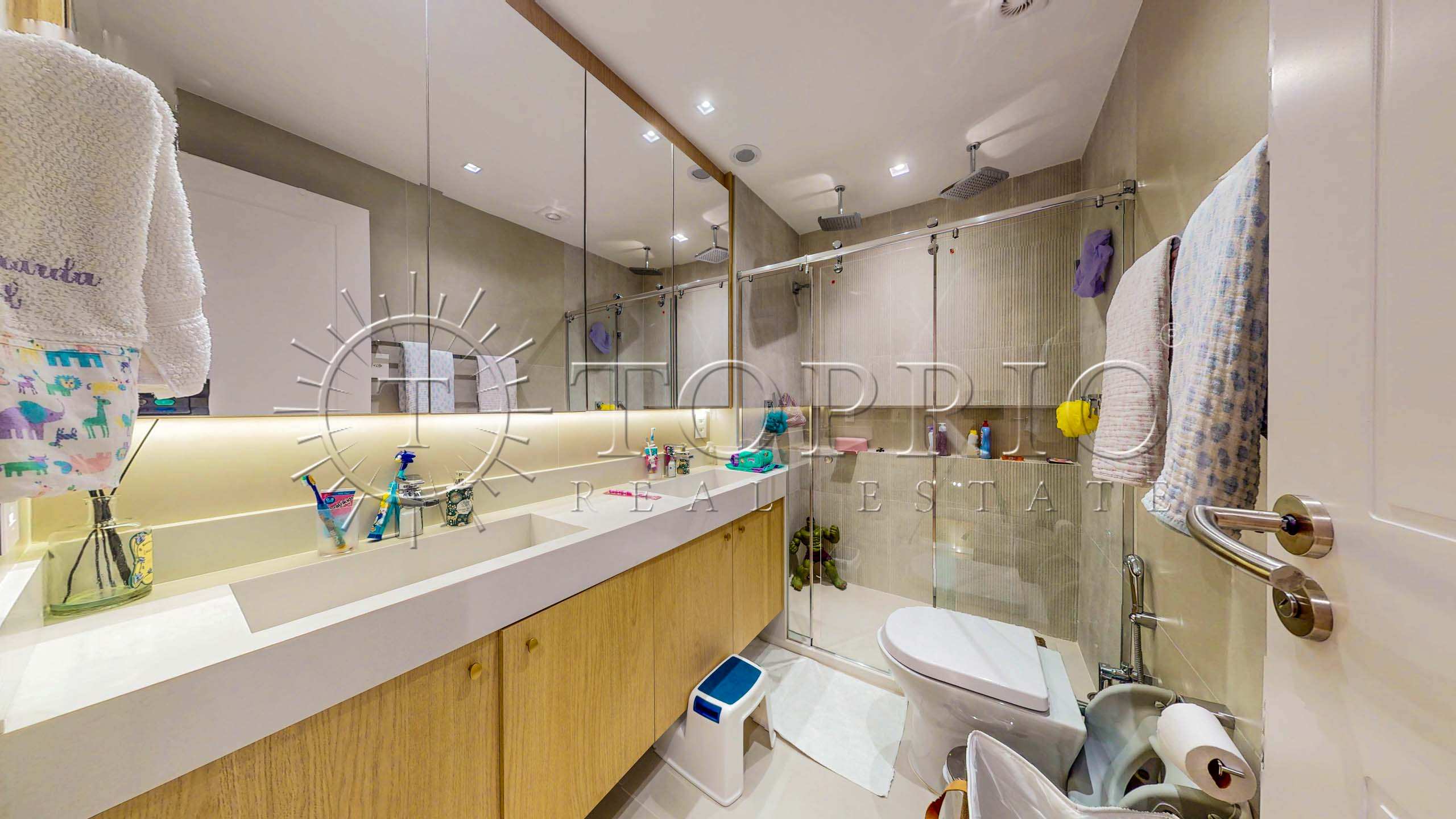 Na área íntima, estão 3 quartos, sendo 2 suítes, além de um banheiro social. Todos os quartos possuem armários, climatização e ótimo tamanho. A suíte master, por sua vez, é um destaque absoluto: oferece um banheiro sofisticado com banheira e um walk-in closet extremamente funcional.