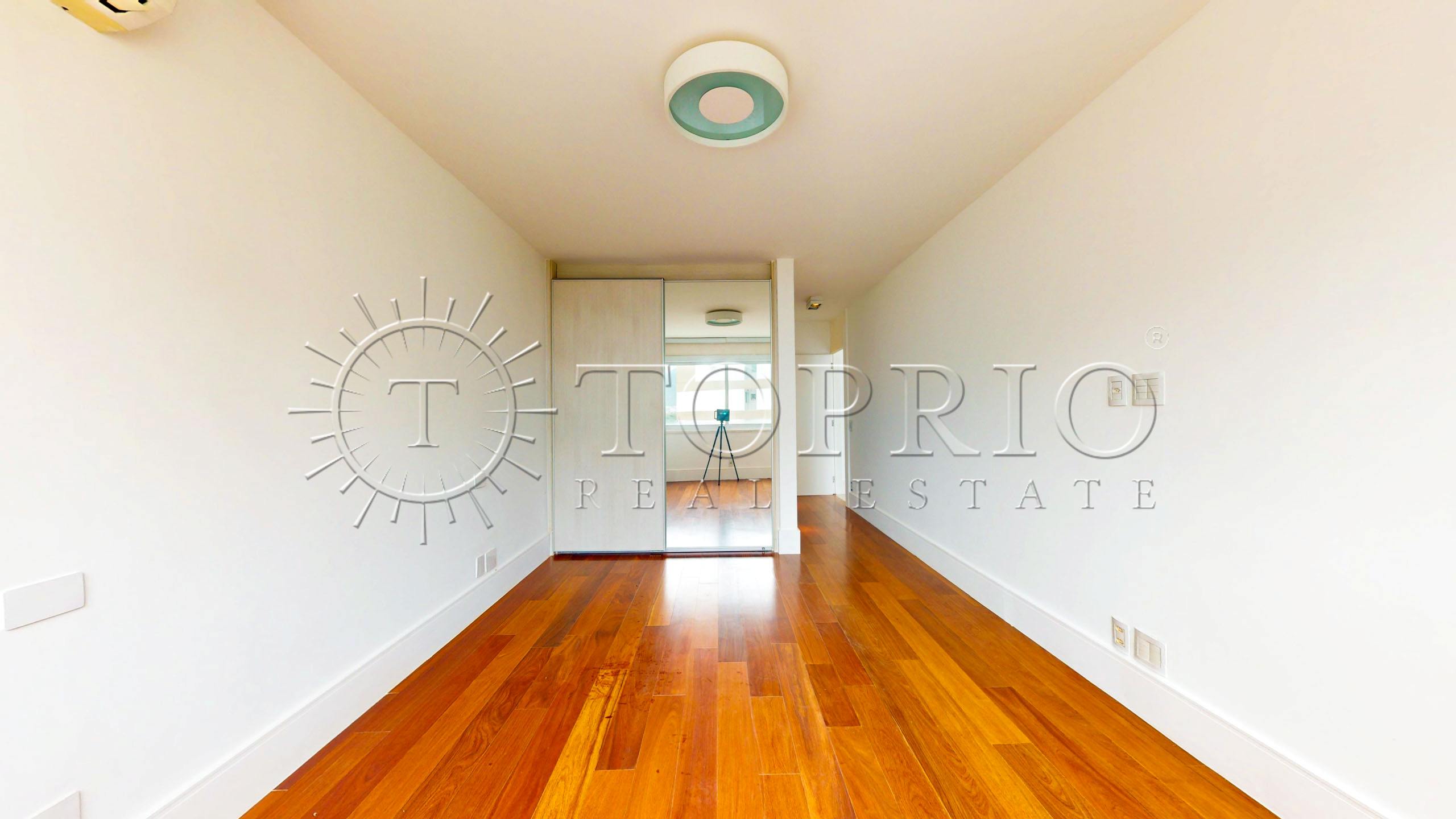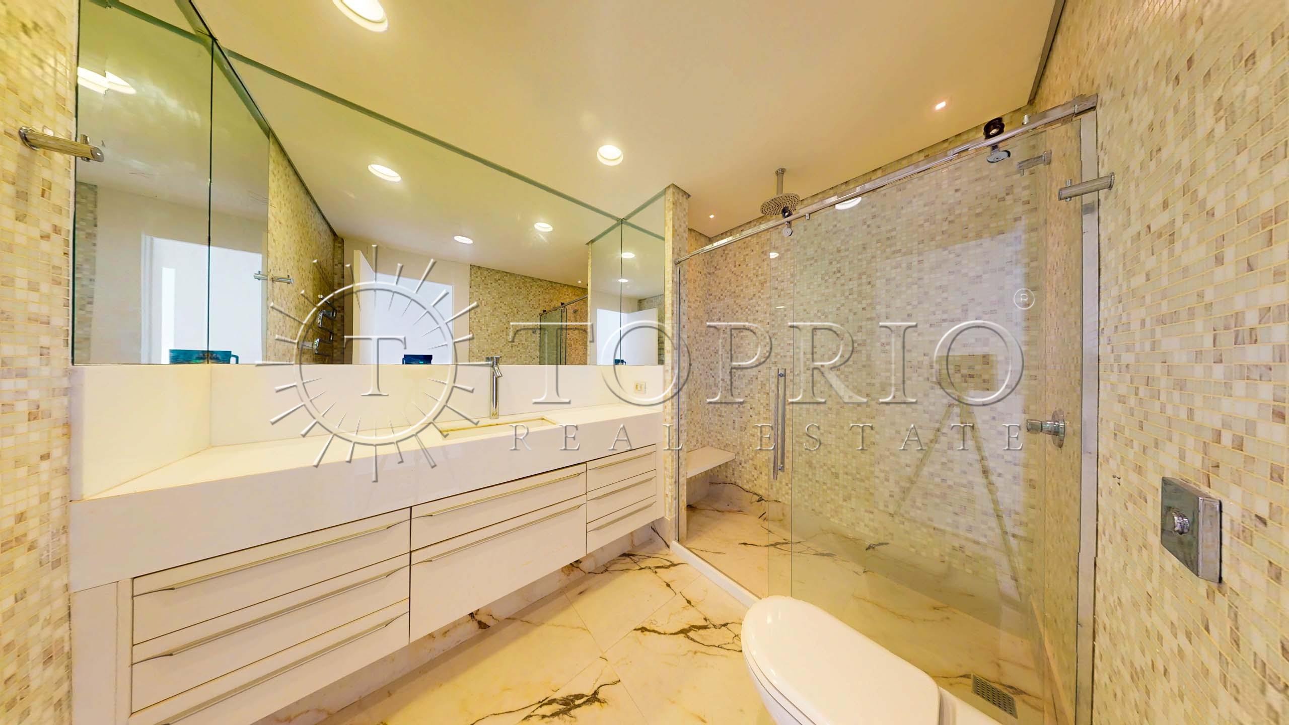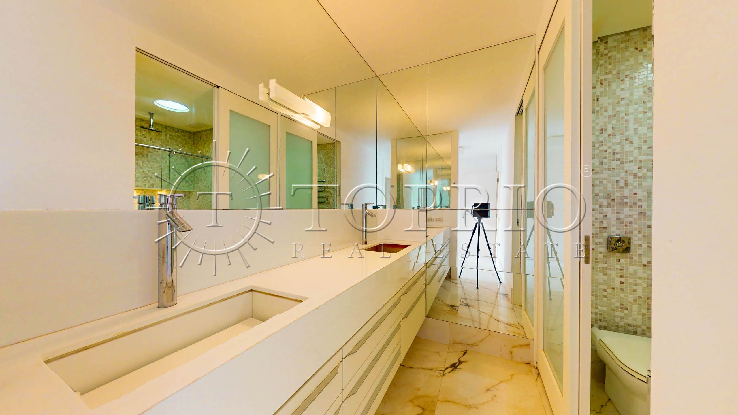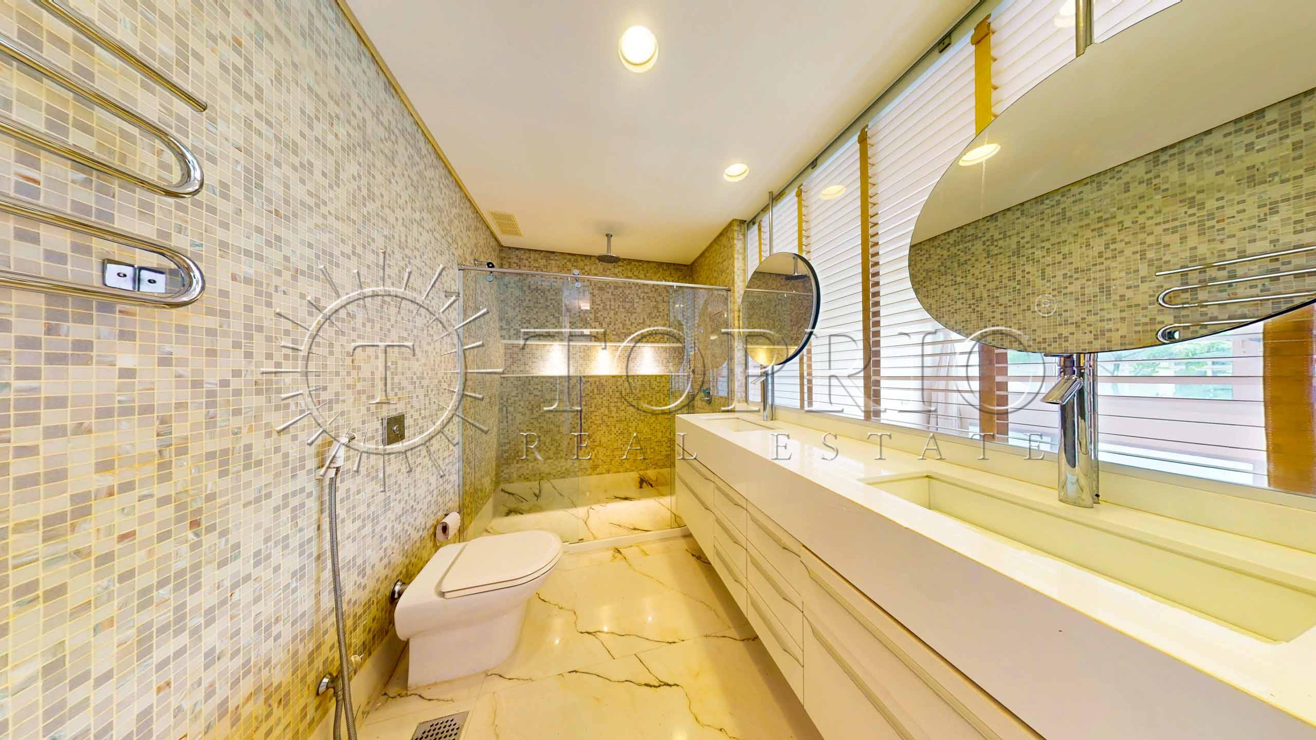 A suíte master é um verdadeiro refúgio: possui banheiro espaçoso e moderno, além de acesso direto a um elevador privativo, o que garante comodidade e exclusividade.
