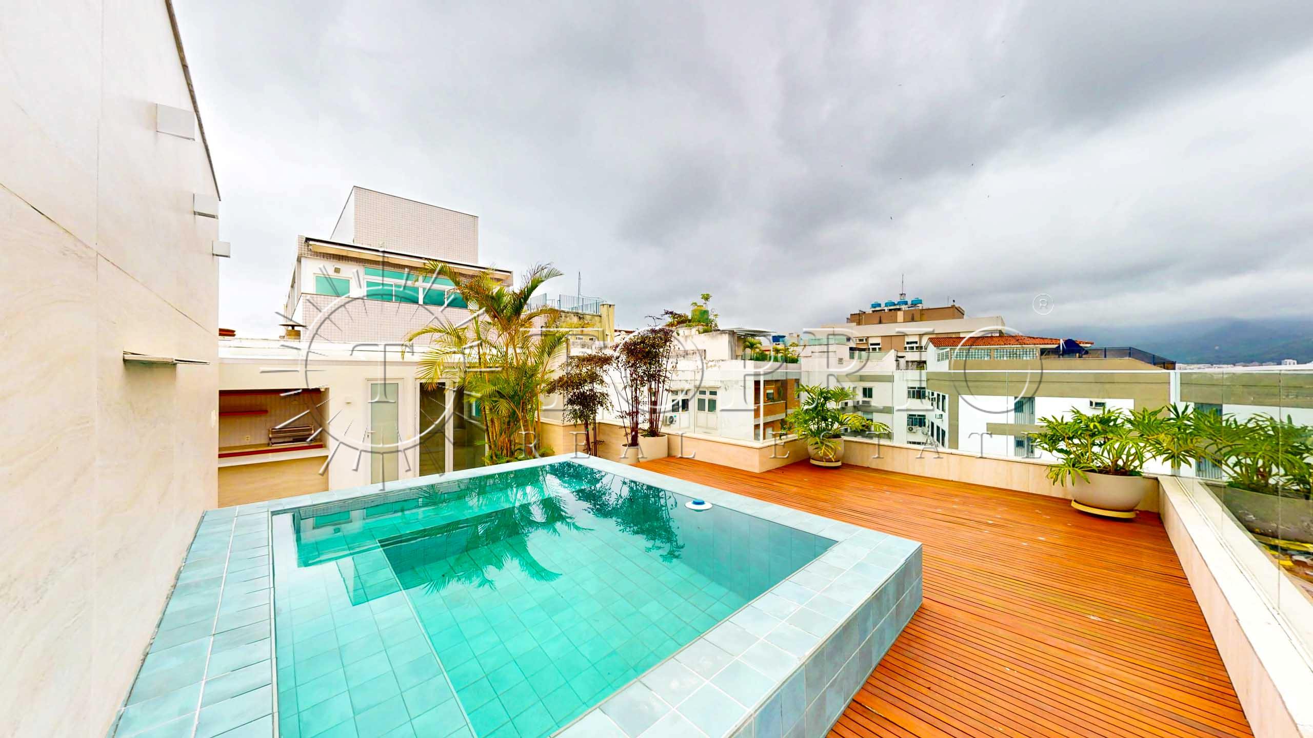 Além disso, o espaço inclui uma área gourmet completa, sauna privativa, lavabo de apoio e uma piscina com vista panorâmica para a Lagoa Rodrigo de Freitas e o Morro Dois Irmãos.